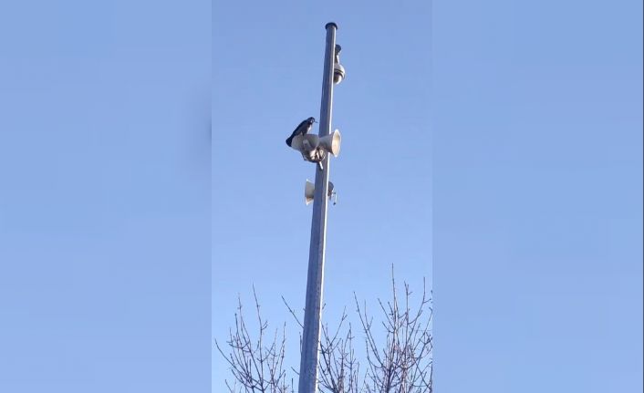 ELAZIĞ (İHA) – Elazığ’da bir direğin üzerine çıkan karga, Allah diye bağırırken o anlar bir vatandaşın cep telefonu kamerasına yansıdı.