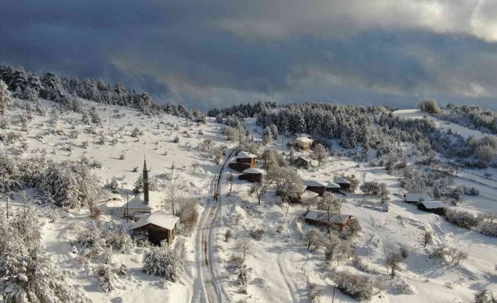 Kastamonu’da, karla kaplanan orman ve köylerde kartpostallık görüntüler ortaya çıktı. Kar manzarası ile mest eden köy ve ormanlar havadan görüntülendi.