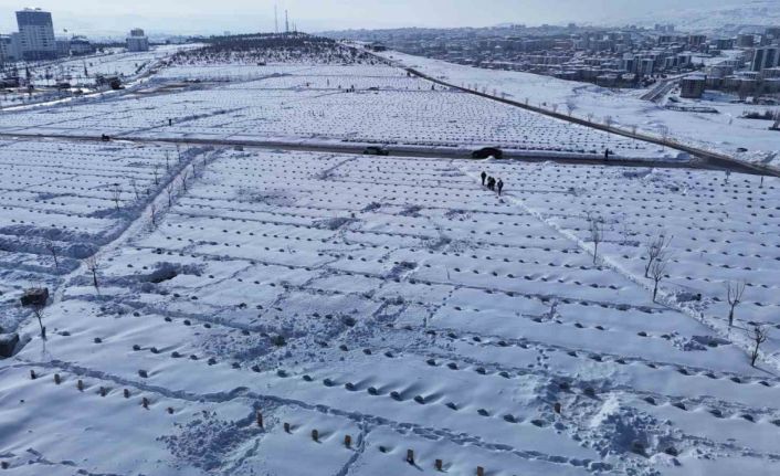 Sivas’ta günlerdir aralıklarla etkisini sürdüren yoğun kar yağışı hayatı olumsuz etkilemeye devam ediyor. Kent genelinde birçok nokta beyaz örtüyle kaplanırken, şehrin en büyük mezarlıklarından biri olan Yukarı Tekke Mezarlığı da kar altında kaldı. Yaklaşık 100 bin mezarın bulunduğu mezarlık alanı tamamen beyaza bürünürken, mezar taşları da kara gömüldü. Bazı vatandaşlar mezar taşları karlı örtüldüğü için yakınlarının mezarlarını bulmakta zorlandı.