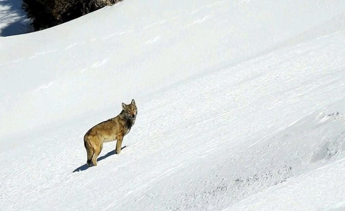 Kavalın sesini duyan kurdun o anları kamerayla kaydedildi. Karlı arazide yükseklere doğru ilerleyen kurdun zaman zaman durup kaval sesini dinlediği gözlendi.