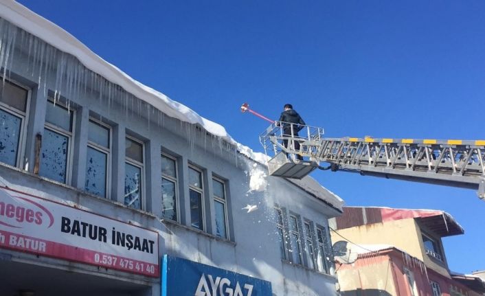 Bingöl’ün Karlıova ilçesinde belediye ekipleri, çatılarda oluşan buz sarkıtlarını ve kar kütlelerini temizlemeye başladı.