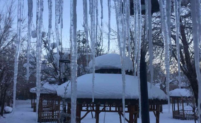 İlçede yer yer kar kalınlığı 40 santimin üzerinde bulunurken, soğuk havayla birlikte çatılarda buz sarkıtları oluştu, caddelerdeki çeşmeler de dondu.