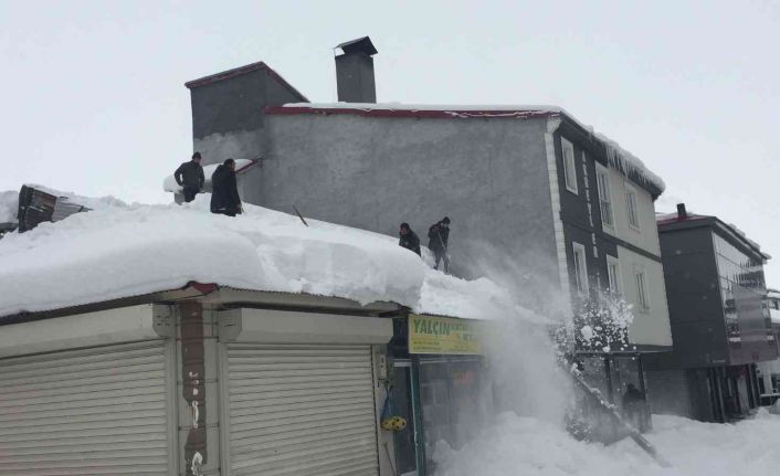 Bingöl’ün Karlıova ilçesinde esnaflar, çatılarda biriken ve neredeyse 1 metreye yaklaşan kar birikintilerini temizledi.