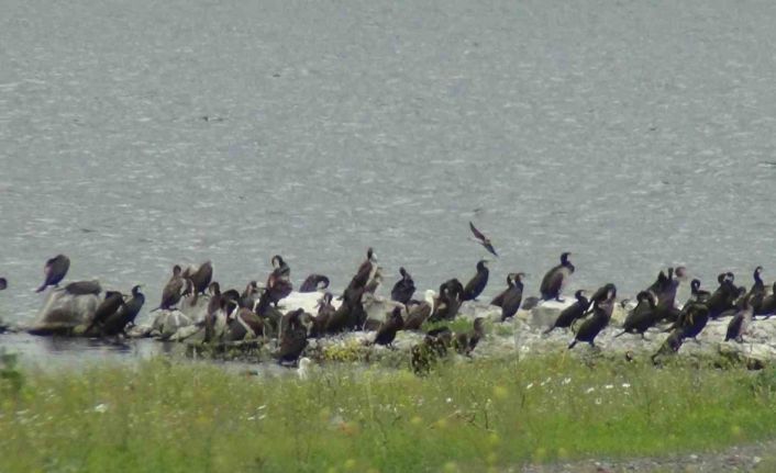 Kars Baraj Gölü’nün etrafına yuvalarını yapan kuşlar, uçsuz bucaksız gölde hem avlanıyor, hem de yavrularını sağlıklı bir şekilde büyütüyor.