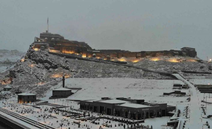 Kars, beyaz gelinliğini giydi. Uzun süredir beklenen kar bir anda etrafı beyaza bürürken, beyazlar içerisindeki kent havadan görüntülendi.