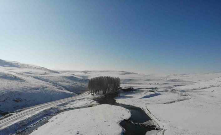 Kars’ta kış mevsimi tüm ihtişamıyla etkisini gösterirken, karla kaplı araziler arasından sessizce süzülen Kars Çayı, görenleri kendine hayran bırakıyor. Beyaz örtüyle kaplanan doğanın içinden kıvrılarak akan çay, adeta bir kartpostal görüntüsü sunuyor.