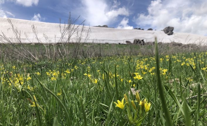 Kars’ta baharla birlikte doğa canlanırken, Mayıs ayında kayalıklarda bulunan 5 metre yüksekliğindeki kar kütlesi görenleri şaşırttı.