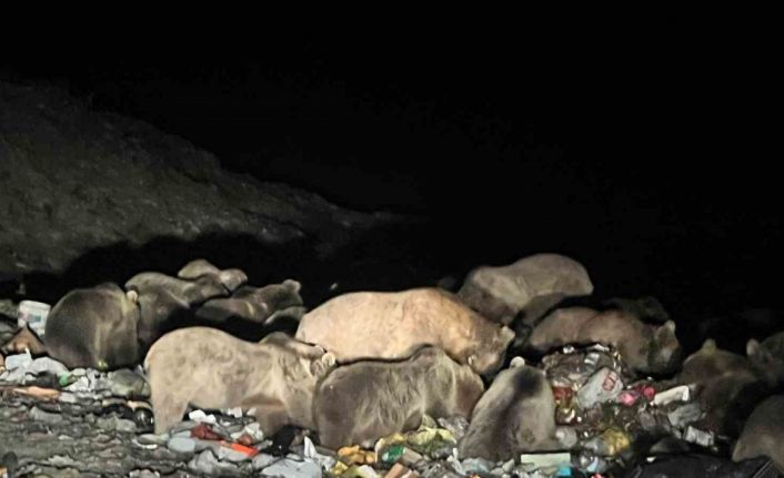 Sarıkamış ilçesinde boz ayılar her akşam yiyecek bulmak için çöp alanına iniyor. Onlarca ayı yavrularıyla birlikte adeta çöplüğü istila etti. Yavrularıyla birlikte karınlarını doyuran ayılar, kameralara yansıdı.