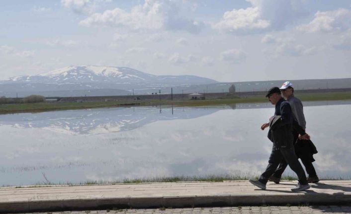 Öte yandan Kafkas Üniversitesi yerleşkesinde oluşan küçük gölet yaban hayvanlarına da kısa süreliğine ev sahipliği yapıyor. Su kuşlarının konakladığı gölet, etrafındaki dağların, bulutların yansımasıyla ilgi odağı olmaya devam ediyor.