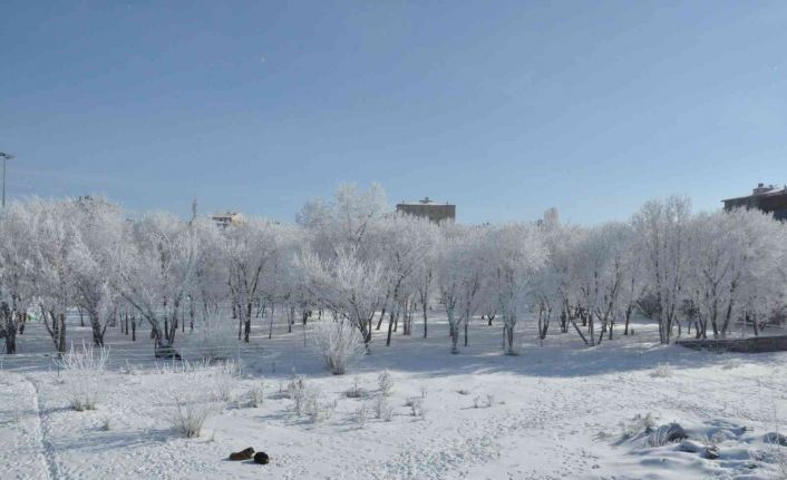 Kars eksi 13’ü gördü, ağaçlar kırağı tuttu, soğuktan beyaza bürünen ağaçlar çiçek açan meyve ağaçları görünümüyle görenleri büyüledi.