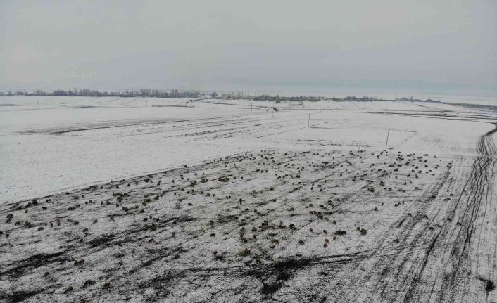 Kars’ta hayvanlarıyla yaylada kalmayı sürdüren son göçerler de kar yağışıyla birlikte göçe başladı. Göçerlerin kar üzerinde yolculuğu havadan görüntülendi.