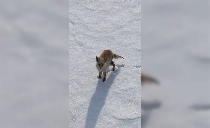 Kars’ta dondurucu soğukta yiyecek arayan tilkinin kendisini görüntüleyen dronu fark etmesiyle yaşadığı merak dolu anlar saniye saniye kaydedildi. Gökyüzündeki yabancı cismi av sanan tilkinin dronla imtihanı izleyenleri gülümsetti.