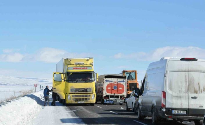 Kars-Arpaçay-Çıldır-Gürcistan karayolunun buzlanmasıyla kayan tır yolu ulaşıma kapattı. Karayolunu kullanan yüzlerce araç ise yolda mahsur kalırken, karayolunda kilometrelerce araç kuyruğu oluştu.