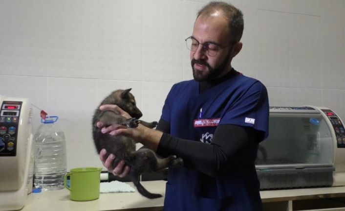 Kars’ta vatandaşlar tarafından bulunan ve koruma altına alınan yavru kurtlar, biberonla besleniyor.