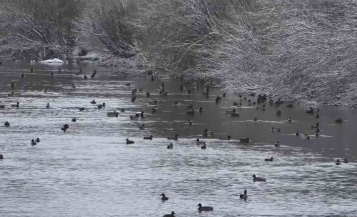 Öte yandan insanlardan uzak bölgede Kars Çayı’nda yiyecek arayan yaban ördekleri anbean kaydedildi. Yüzlerce ördeğin su üzerinde yüzmesi ise renkli görüntüler ortaya çıkardı. Kars Çayı’nda yiyecek ihtiyaçlarını karşılayan yaban ördekleri daha sonra göç yollarına devam ettiler.