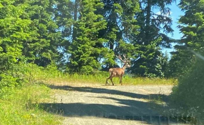 Kastamonu’nun İhsangazi ilçesinde orman işçileri tarafından kızıl geyik görüntülendi.
