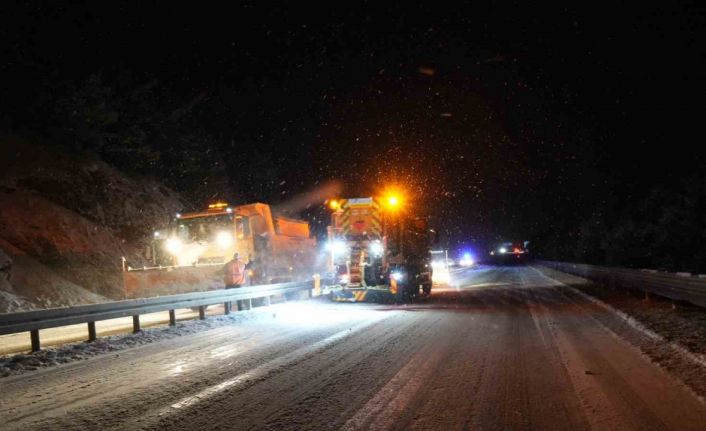 Karayollarına bağlı ekipler ise Oyrak mevkiinde hem kar kürüme hem de tuzlama çalışması yürüterek yolda mahsur kalan araçlara yardım ediyor.