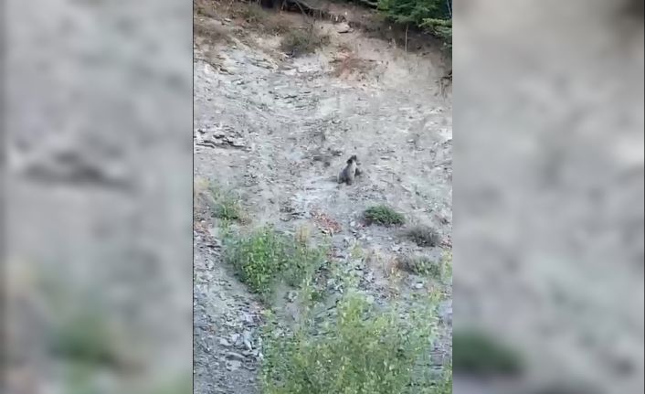 Kastamonu’nun Bozkurt ilçesinde iki farklı alanda bozayı ve yavruları, vatandaşların önüne çıktı. Bozkurt ilçesine bağlı Mamatlar köyünde orman kesiminden dönen işçilerin önüne, Isırganlık mevkiinde bozayı ve yavruları çıktı. Annelerinin ardından yamaca tırmanmaya çalışan yavru ayıları fark eden orman işçileri, cep telefonu ile görüntülendi.