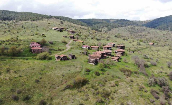 Bölgenin ahşap kültürünü de yansıtan evler, dron ile görüntülendi.