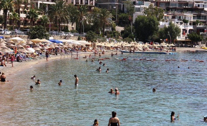 Muğla’nın Bodrum ilçesinde hava sıcaklığının 35 dereceyi bulmasıyla yerli ve yabancı turistler sahillere akın etti.