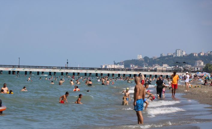 Çöl sıcaklarının etkili olduğu Samsun’da vatandaşlar serinlemek için sahillere akın etti.