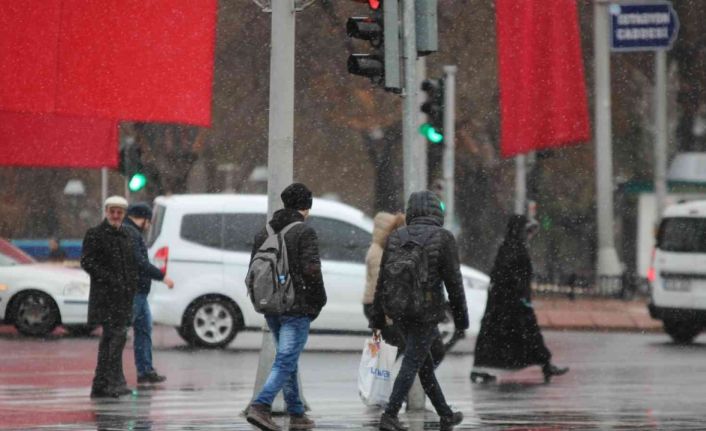 Hava sıcaklıklarının hissedilir derecede düştüğü Kayseri kent merkezinde, mevsimin ilk karı yağdı.