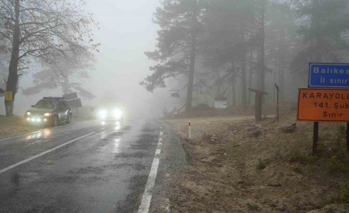 Balıkesir’de akşam saatlerinde Kazdağları bölgesinde etkili olan yoğun sis trafiği olumuz etkiledi.