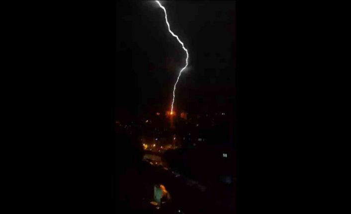 Zonguldak’ın Ereğli ilçesinde etkili olan sağanağın ardından etkili olan şimşekler, geceyi aydınlattı.