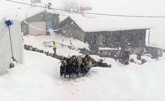 Keçilerin inadı yarım metreyi bulan kara yenilmedi