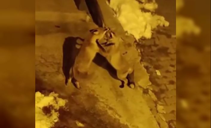 Tunceli’de sokak kedilerine verilen mamalardan tilkiler de nasipleniyor. Mama nedeniyle zaman zaman birbiriyle kavga eden tilkilerin o anları cep telefonu kamerasına da yansıdı.