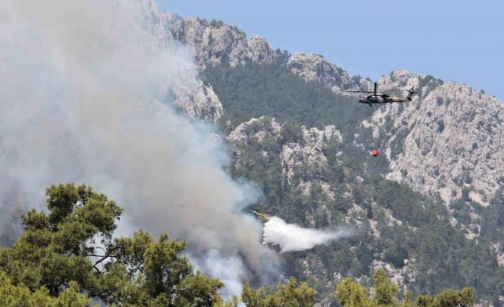 Kemer ilçesinde 24 Haziran Pazartesi akşamı saat 21.08’de başlayan orman yangını dar kısımdaki kanyonda devam ediyor. Dün havanın kararmasıyla birlikte gece boyunca 5 gece görüşlü helikopterin havadan söndürme çalışmalarını yürüttüğü bölgede, günün ilk ışıklarıyla birlikte havadaki söndürme ekip sayısı arttı. Yangına 23 helikopter ve 9 uçakla müdahalede bulunuyor. Karadan ise binin üzerinde personel, arazöz, iş makinelerinin hava ekiplerine destek veriyor. Helikopter ve uçaklar sık aralıklarla sorti düzenleyip denizden aldıkları suyu yangın bölgesine taşıyor.
