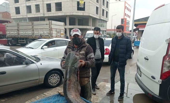 Sivas’ın Şarkışla ilçesinde avladığı balıkları satarak geçimini sağlayan Engin Olcak’ın kancasına adeta talih kuşu kondu. Kayseri’nin Pınarbaşı bölgesinde avlanan Olcak’ın kancasına kendi boyundan uzun yayın balığı takıldı. Olcak, 35 kilo ağırlık ve 2 metre uzunluğa sahip balığı satışa çıkarttı. Olcak bütün olarak satamayacağı balığın kilosuna 25 TL istiyor. Dev balığı görenler şaşkınlıklarını gizleyemiyor.Kendi boyundan uzun balık yakaladı