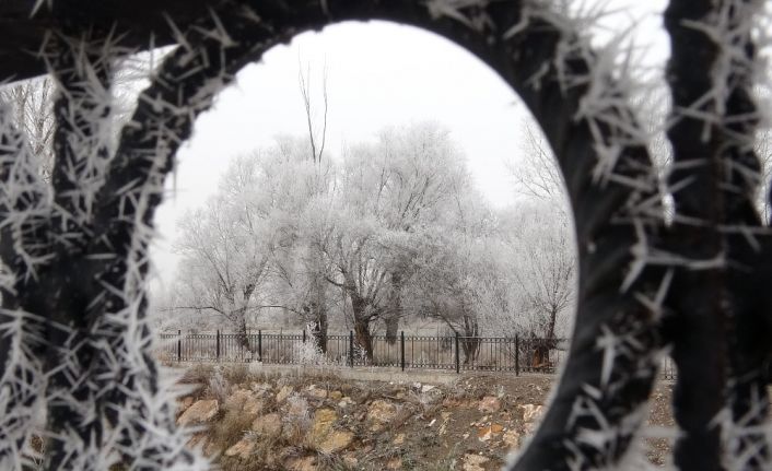 Sivas’ta termometreler sıfırın altında 5 dereceyi gösterirken etrafı beyaza bürüyen kırağı ise güzel görüntüler oluşturdu.