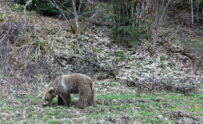 Kastamonu’da baharın gelmesiyle birlikte kış uykusundan uyanan ayılar, ormanlık alanda beslenirken görüntülendi.