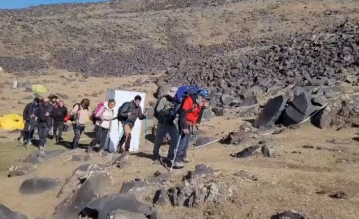 Bir grup dağcıyla Ağrı Dağı’na çıkmak isteyen bedensel engelli dağcı, koltuk değnekleriyle zoru başardı.