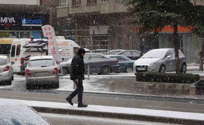 Konya’da şehir merkezinde sabah saatlerinden itibaren kar yağışı başladı.