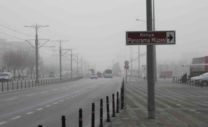 Konya’da etkili olan yoğun sis hayatı olumsuz etkilerken, uçak seferleri de iptal edildi.