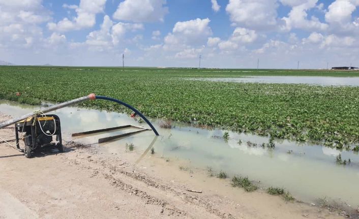 Konya’da suyla dolan tarlalardan su tahliye çalışması yapılıyor