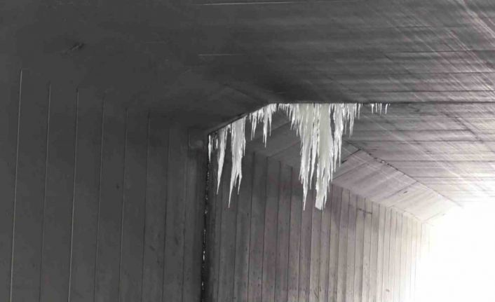Erzurum’da etkili olan kar yağışı ve buzlanma sonrası köprülerde dev buz sarkıtları oluştu.