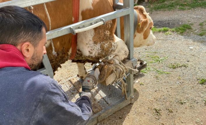 Tırnak bakımının büyükbaş hayvanlar açısından önemli olduğunu ifade eden veteriner teknisyeni Fikret Biçer, "Tırnak bakımının hayvanlarda, özellikle büyükbaşlarda sıkıntı oluşturduğu dönemler oluyor. Tırnak sıkıntısı olduğunda hayvan artık yürüyemiyor, süt ve döl verimi düşüyor hatta veremiyor. Veteriner hekim gözetiminde tırnak bakımı yapıyoruz. Köylere hizmet veriyoruz. Vatandaş, kış boyunca içeride olduğu için büyükbaş hayvanının bakımını genelde bu mevsimde yaptırıyor. Bu nedenle bizler de bu dönemlerde yoğun oluyoruz" dedi.