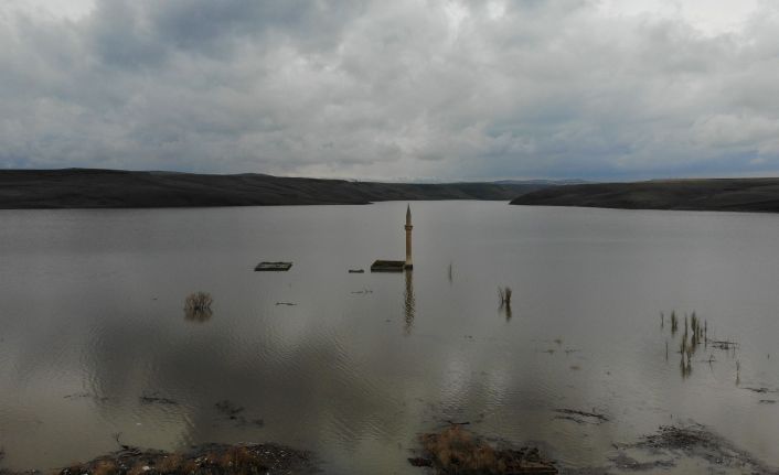 Kars’ta, 47 bin 578 hektar tarım arazisini sulayacak Kars Barajı’nın yeniden su tutmasıyla birlikte sular altında kalan Boğazköy ve Çamçavuş köylerinde geriye sadece cami minareleri kaldı.