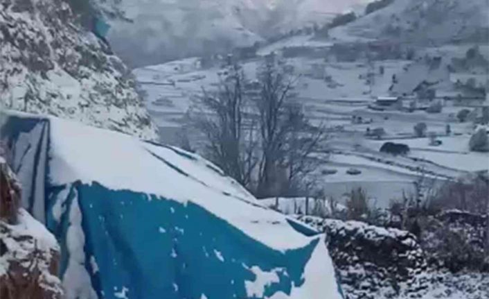 Sabah saatlerinden itibaren etkisini gösteren kar yağışı ile birlikte kar kalınlığı 5 santimetreye ulaşan Balgöze’de kartpostallık manzaralar oluştu.