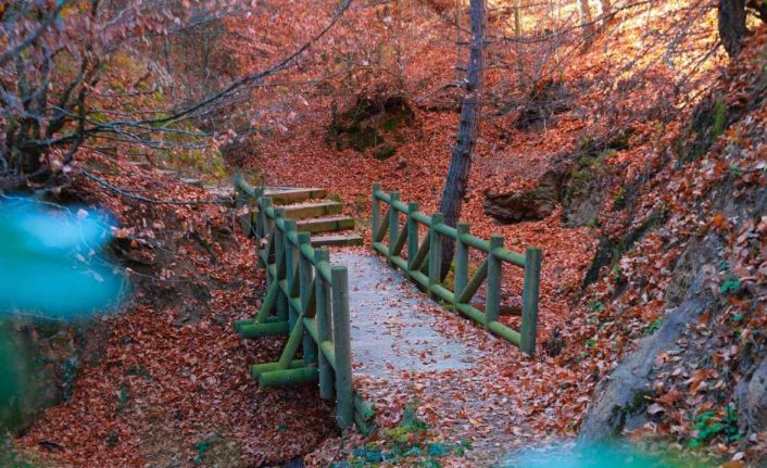 Bilecik’te ’Göletler Diyarı’ diye adlandırılan Pazaryeri’nde bulunan Küçükelmalı Tabiat Parkı’nda sonbaharın gelişiyle dökülen yapraklar kartpostallık görüntüler oluştu.