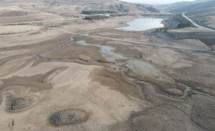 Yaklaşık 35 yıl önce yapılan gölette son yılların en düşük su seviyesi yaşanıyor. Gölette yaşanan bölgedeki çiftçileri endişelendirirken, kuraklığın ürkütücü boyutları havadan görüntülendi.