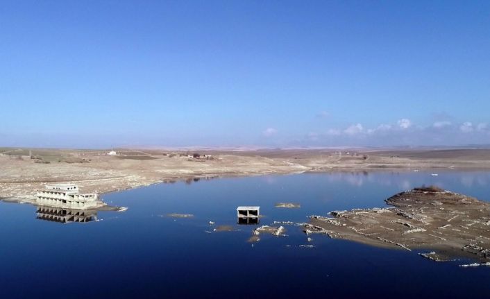 Barajda balıkçılık yaptıklarını da dile getiren Özanç, "Daha önce şuan ortaya çıkan belediye binasının üzerine kayıkla gelip ağ gererdik, şimdi sular binanın altında kaldı. Fazla balık da çıkmıyor, 600 metre ağ çektim 2 balık çıktı" dedi.