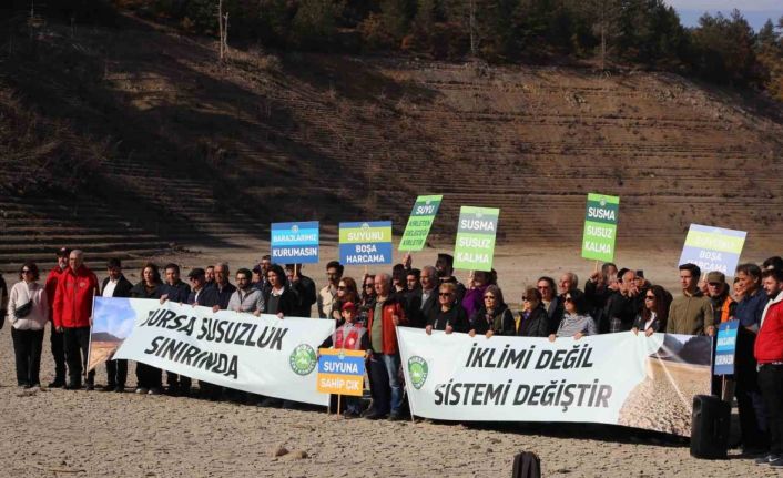 Bursa Kent Konseyi kuruyan Nilüfer Barajında basın açıklaması gerçekleştirdi. Kuruma tehlikesiyle karşı karşıya kalan Nilüfer Barajı’nda su seviyesi yüzde 2 olarak ölçüldü.
