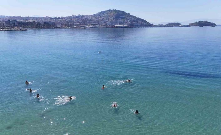 Kadınlar Denizi Plajı’nda denize giren Hilal Erdoğan, "Kuşadası’nda yazdan kalma bir gün yaşanıyor. Hava sıcaklığının yükselmesiyle birlikte kentimiz canlandı. Mart ayında denize girmenin keyfini çıkarıyoruz" dedi.
