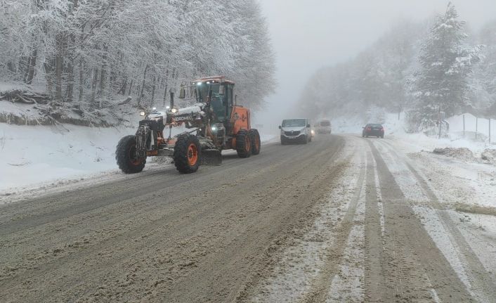 Kütahya’nın Domaniç ve Bursa’nın İnegöl ilçeleri arasındaki Domaniç Dağları’nda etkili olan kar, sürücülere zor anlar yaşatıyor.