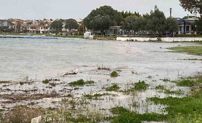Balıkesir’in Ayvalık ilçesinde hızı saatte 65 ile 90 kilometreyi aşan kuvvetli lodos nedeniyle yükselen deniz suyu, kıyı şeridini sular altında bıraktı.