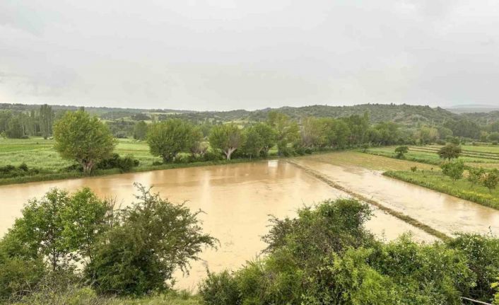 Kastamonu’nun Taşköprü ilçesinde etkili olan kuvvetli sağanak yağış sebebiyle tarlalar göle dönerken, yollar da zarar gördü.